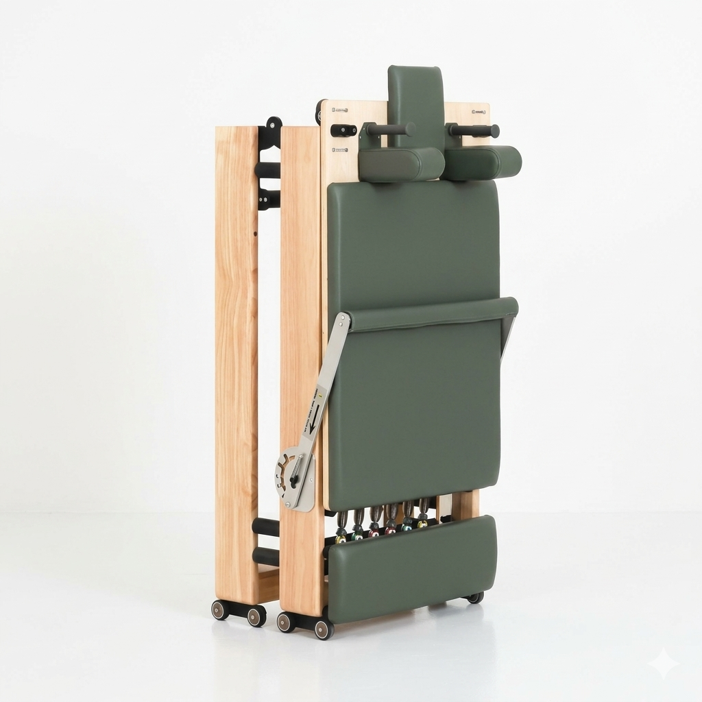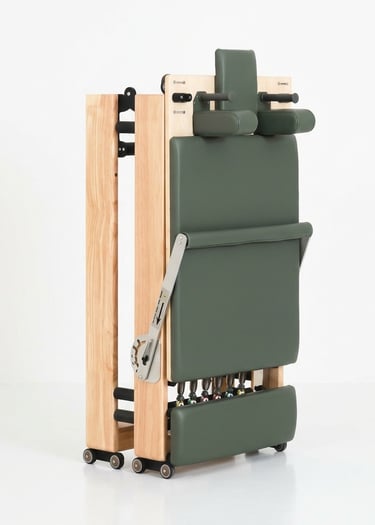 Our foldable reformers are designed for customers who want a more refined Pilates experience at home, without the bulk of a traditional studio reformer.